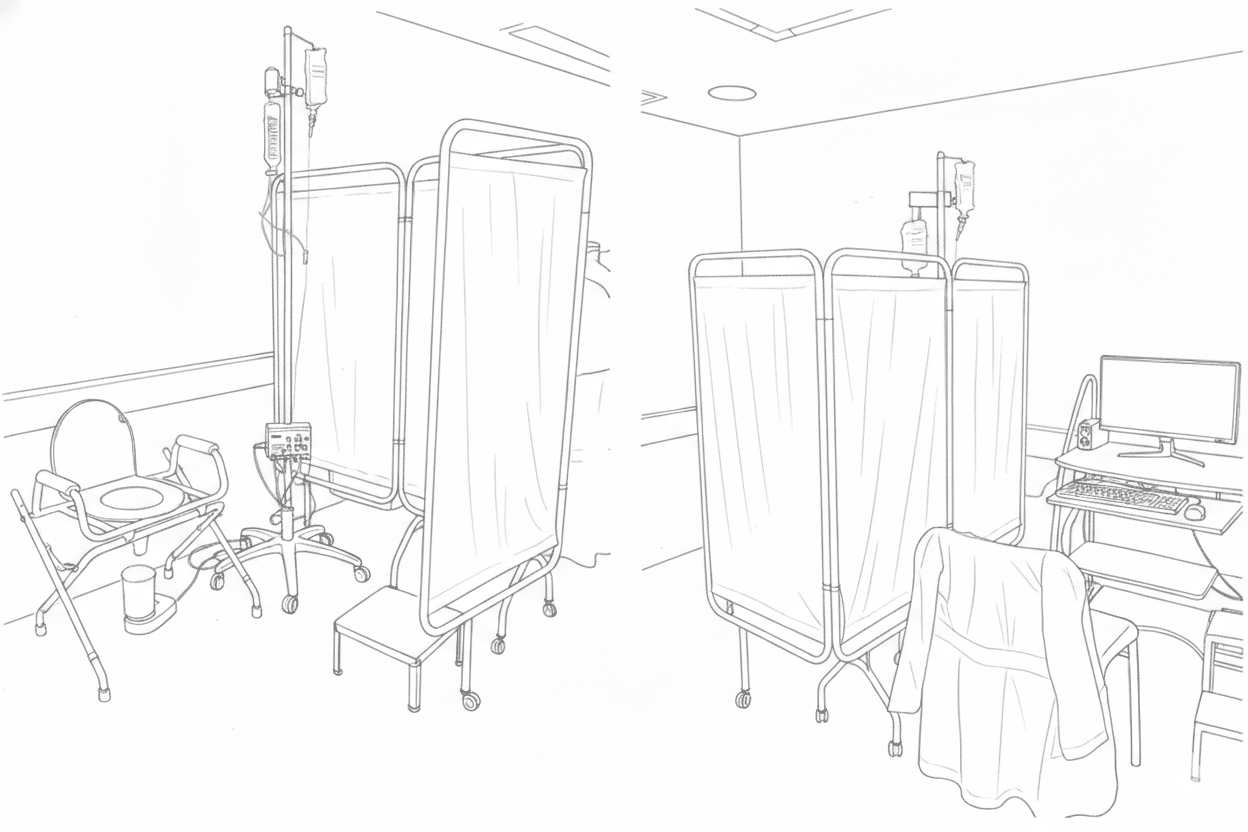 • Biombo (para mantener la intimidad del paciente al cambiarse y descambiarse)